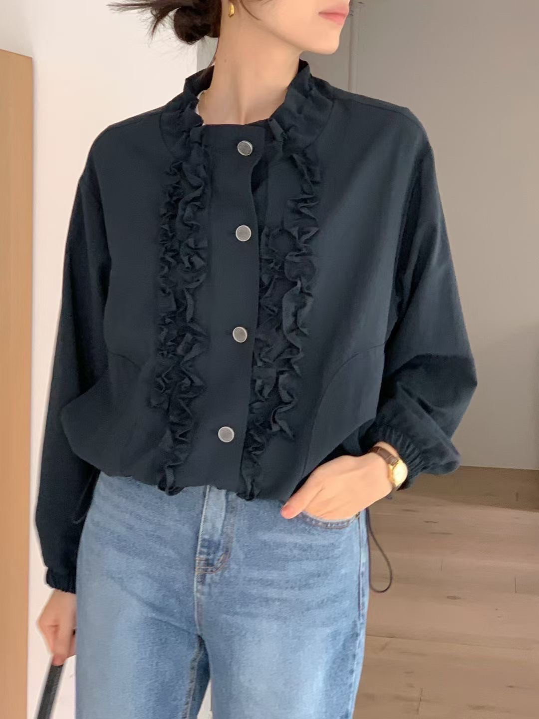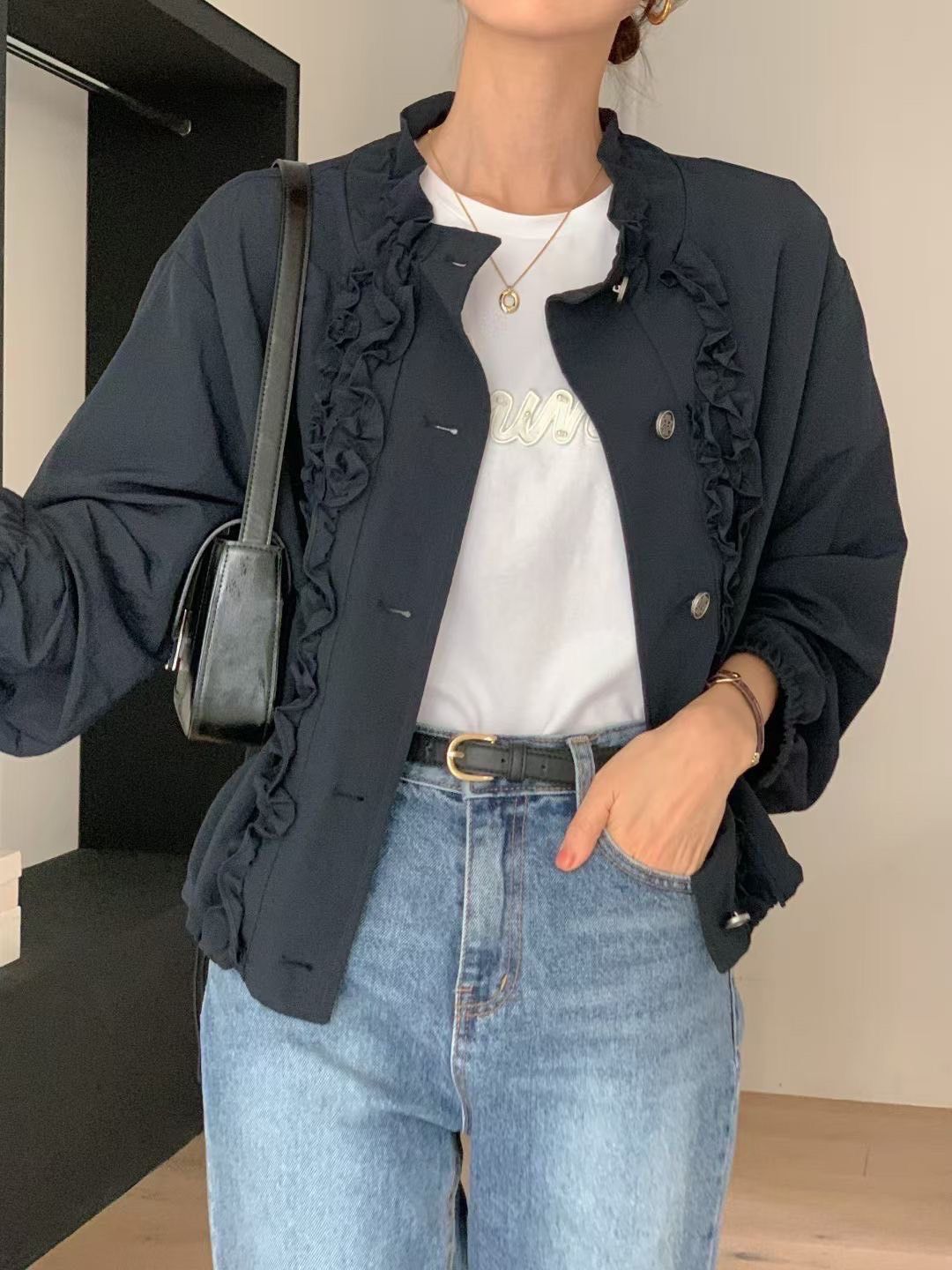 商品詳情 繁花綴飾荷葉立領外套以細緻荷葉邊點綴 \領子後側有抽繩設計,可隨意調整鬆緊/ 搭配輕盈布料與精緻金屬釦設計,營造柔美層次感 寬鬆版型舒適百搭,展現優雅俐落的時尚氛圍 繁花綴飾荷葉立領外套 TWD $3,500 TWD $3,500
