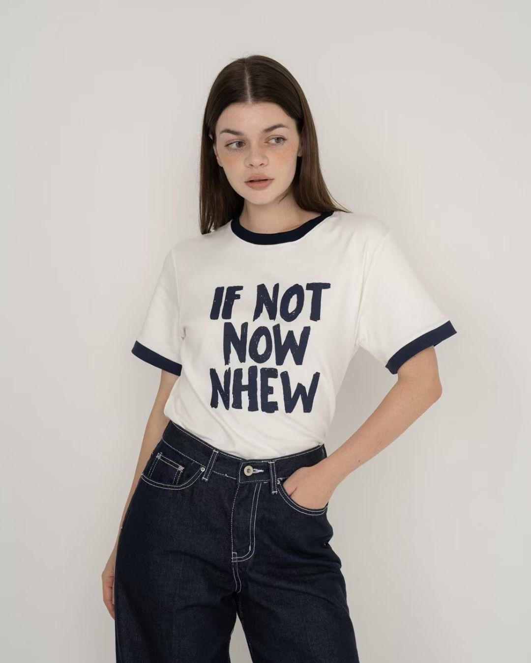 拼色上衣,字樣T恤,韓系短袖,休閒Tee,韓風女裝,質感上衣,日常穿搭,俐落造型,時尚短袖
