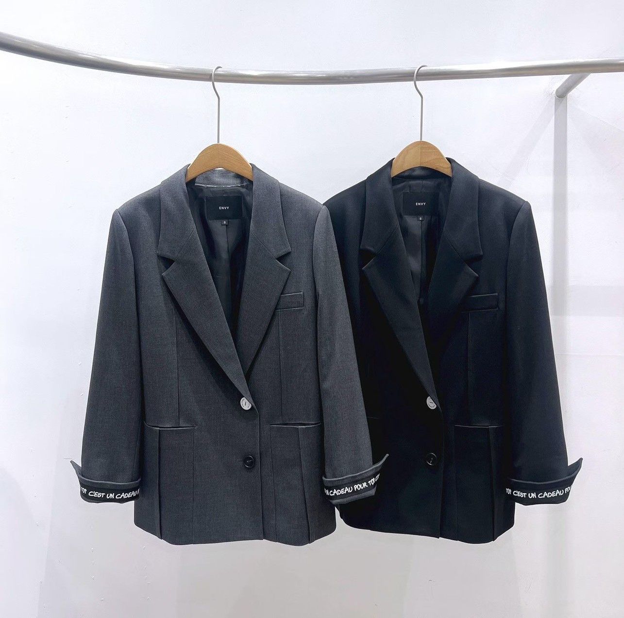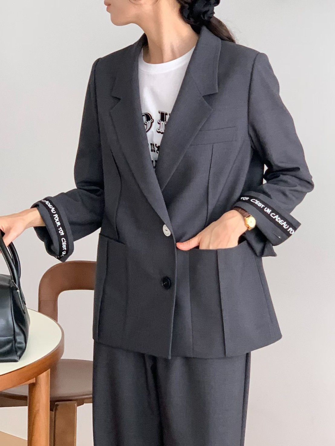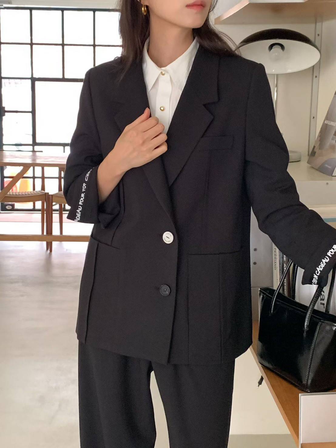 商品詳情 字邊袖語寬版西裝外套以挺版質料打造俐落廓形 袖口內層飾以字母織帶細節,低調中展現個性品味 單釦設計與大口袋剪裁兼具實穿與造型感 字邊袖語寬版西裝外套 TWD $4,800 TWD $4,800