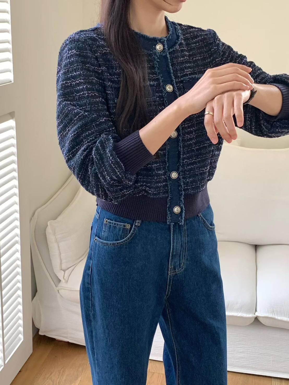 商品詳情 以細膩編織紋理呈現高雅層次,結合柔和光澤與銀釦點綴 合身剪裁修飾身形比例,搭配微收袖口設計 無領圓弧設計展現法式溫柔氣息,是襯托品味的經典必備外套 琉光織序銀釦外套 TWD $2,800 TWD $2,800