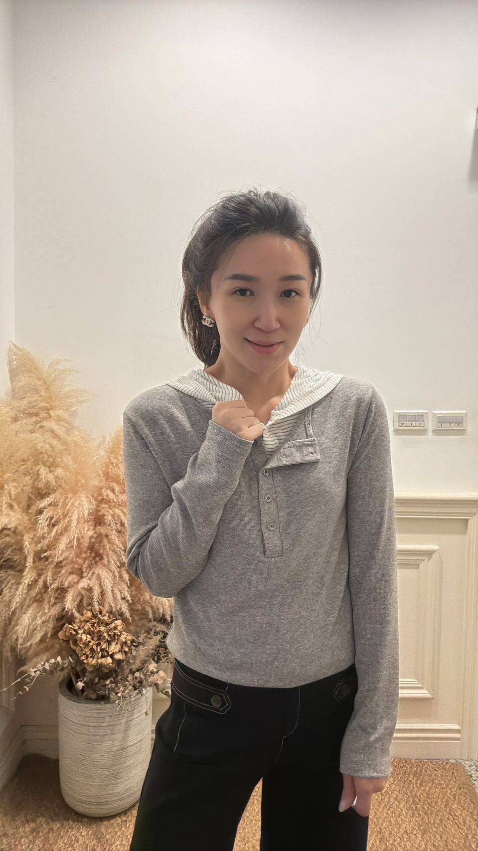 商品詳情 簡約卻充滿巧思以溫柔灰調為基底 拼接條紋內領,營造立體層次與微微法式的知性氣質 柔軟親膚的針織面料帶來舒適包覆感 單穿或搭配外套都能展現俐落又溫柔的日常 雙領層次設計針織上衣 TWD $1,700 TWD $1,700
