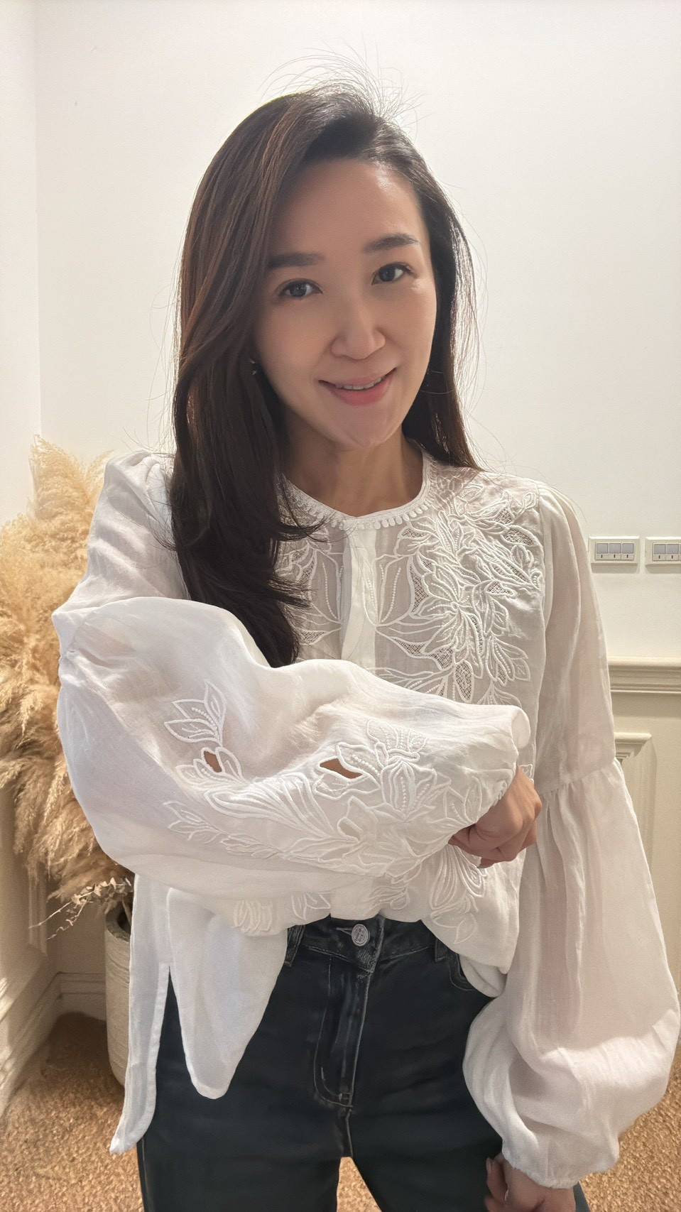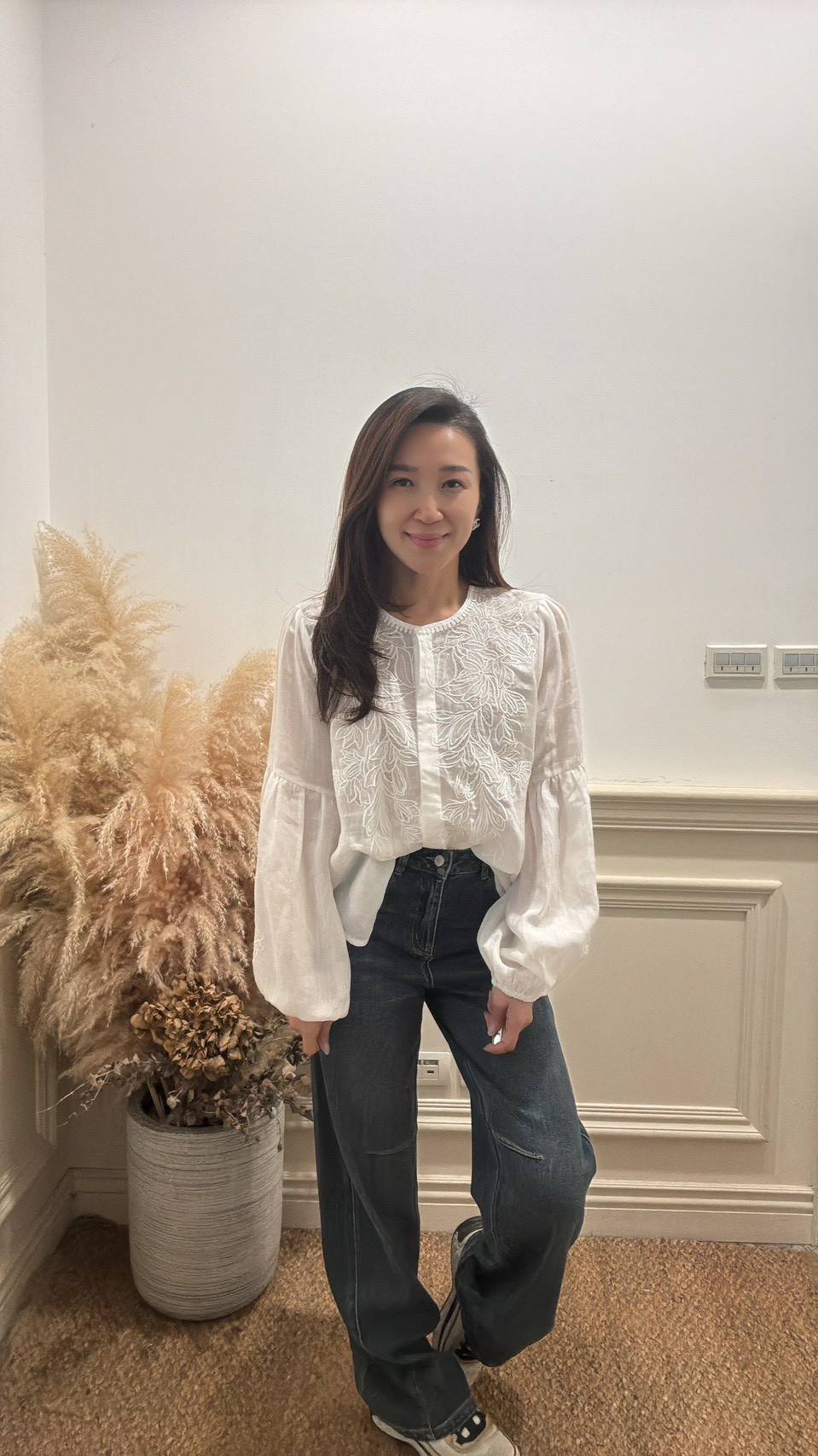 刺繡上衣,長袖上衣,韓系上衣,氣質上衣,花卉刺繡,立體刺繡,雪紡上衣,泡泡袖上衣,韓國女裝,氣質穿搭